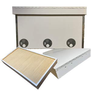 The 20 frame insulated hive (walls and bottom 8 R-value) comes with a follower board included. Hive is painted white with exterior paint. No alternate colors are offered.
