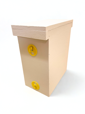 Our swarm boxes are unique in that they are built out of 5/8″ plywood making them idea if you want to overwinter a nuc. The nuc is painted white with exterior paint. No alternate colors are offered. The nuc also comes with a follower board so you can keep a swarm or split in it over the summer to build up. Finally, hive entrances are provided in the front and back allowing a beekeeper to configure the box as two 3 frame queen mating nucs making this swarm box a 3-in-1 design increasing the all year value of this purchase.Ā