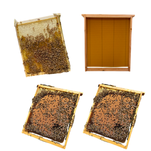 4 Frames (transfer box not included) – 1 Laying queen, 2 brood frames, 1 resource frame, 1 frame of foundation only. Sold Out
